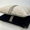 Almofadas em lona de puro algodão, com galão francês, bordadas, desfiadas e pré-lavadas.